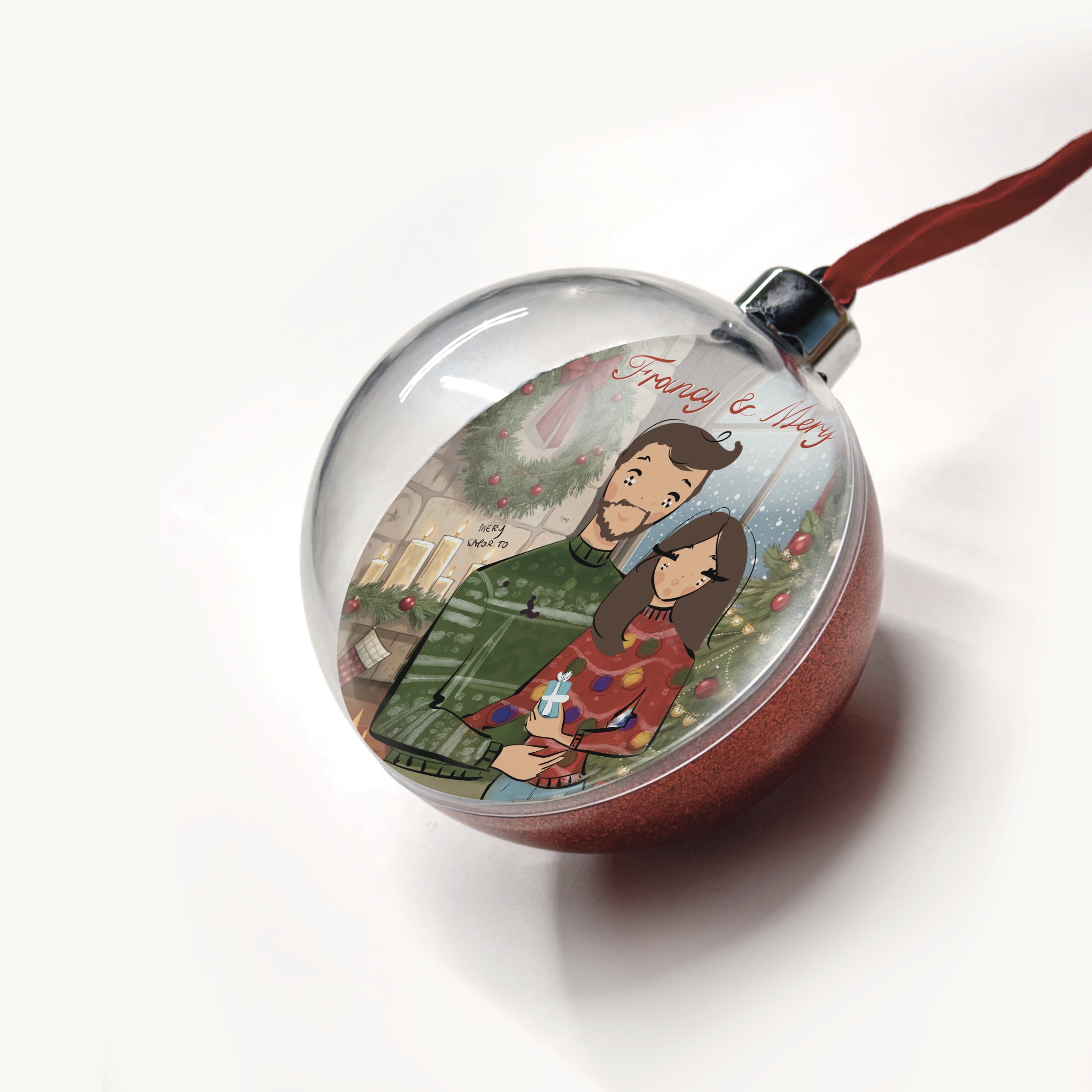 All’interno di questa elegante pallina rossa glitterata prenderà vita un’illustrazione unica e speciale firmata Mery Saporito:  un piccolo capolavoro che racchiude il tuo mondo in un solo sguardo.
